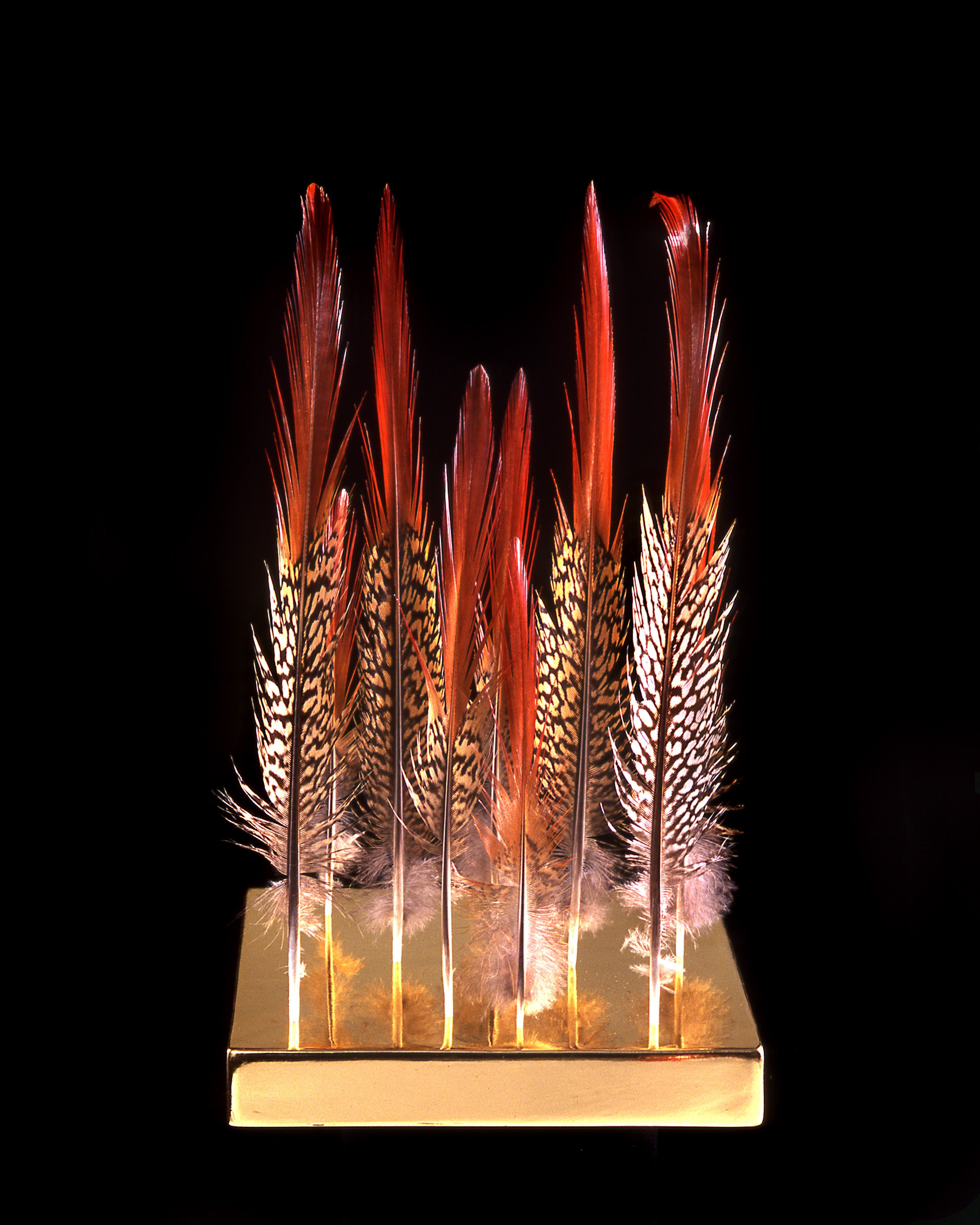 I am deeply drawn to the bird world as a boundless source of color, song, symbol, depth, and beauty: all the dazzle of life that takes us by sheer surprise. My work draws on these traces of bird life--bird feathers--joined with the separate fineness of gold--and threaded through with poetry and the embrace of music.